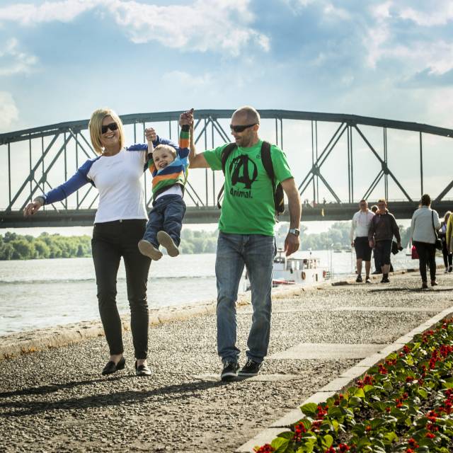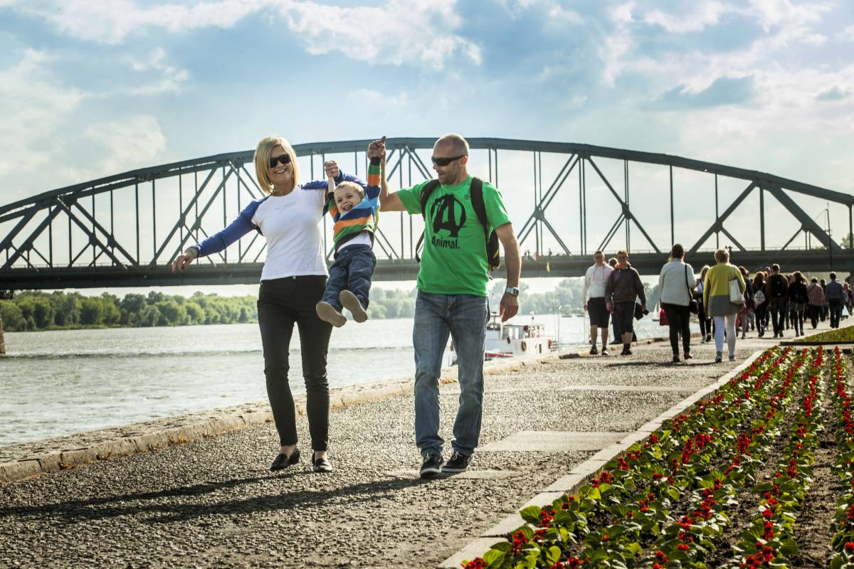 Będąc w grodzie Kopernika koniecznie wybierz się na spacer po Bulwarze Filadelfijskim. Jego nazwa pochodzi od Filadelfii – amerykańskiego miasta partnerskiego Torunia. Ulubione miejsce spacerowe torunian ciągnie się wzdłuż wiślanego nabrzeża, z którego podziwiać możesz pasmo średniowiecznych murów miejskich z basztami i bramami, zza których wyłaniają się kamienice, wieże gotyckich kościołów i ruiny krzyżackiego zamku. W pobliżu Bramy Żeglarskiej „zacumowała” legendarna łódka „Katarzynka”, która upamiętniona została w filmie „Rejs”, kręconym na toruńskim nabrzeżu w 1969 roku. Pamiątką po tym wydarzeniu jest murek pokryty graffiti z kultowymi filmowymi cytatami.