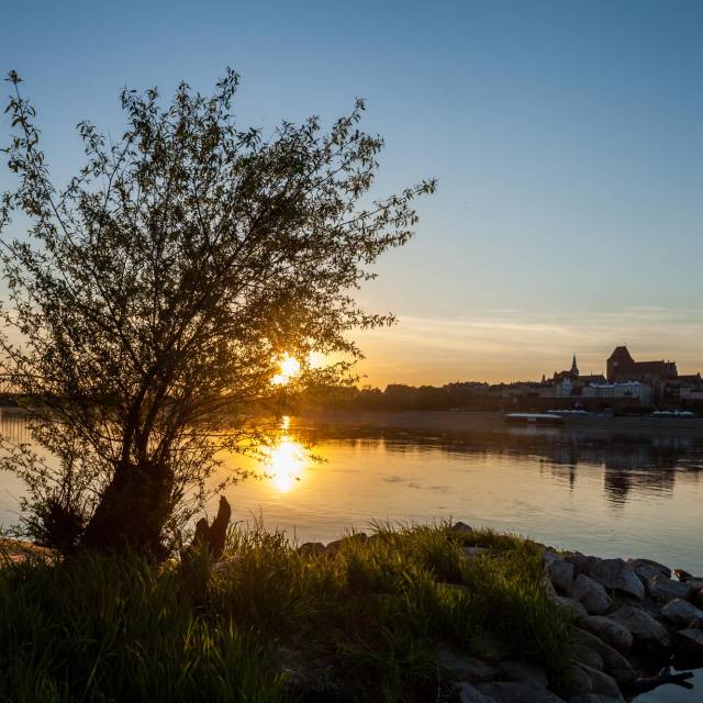 „Pocztówkową” panoramę toruńskiej starówki najlepiej podziwiać z, położonej na przeciwległym brzegu Wisły, wyspy zwanej „Kępą Bazarową”. Efektowna panorama miasta szczególnie wyjątkowo prezentuje się wieczorową porą, w blasku nocnej iluminacji. Porośnięta łęgowo-topolowym lasem wyspa stanowi dziś rezerwat przyrody. Miejsce to zapisało się także na kartach historii. W 1411 roku król Władysław Jagiełło zawarł tu z Krzyżakami pierwszy pokój toruński.