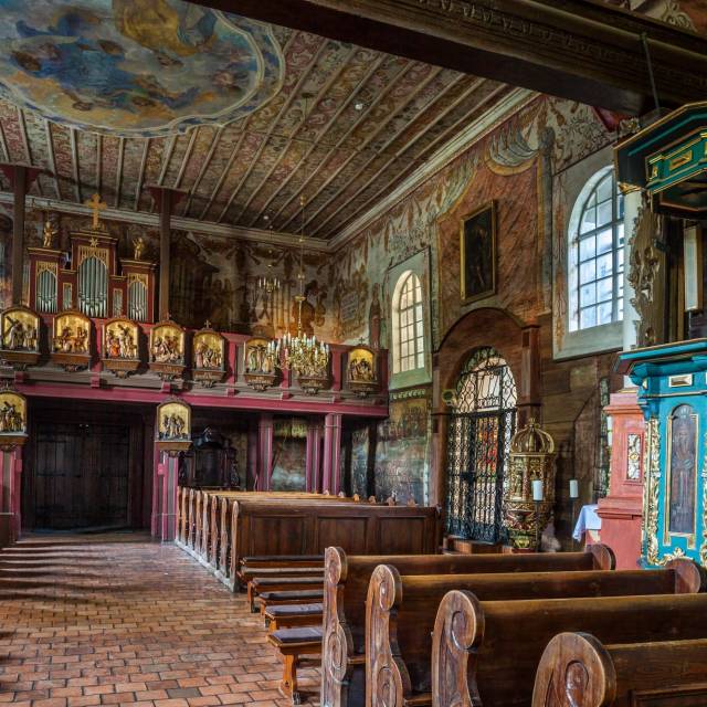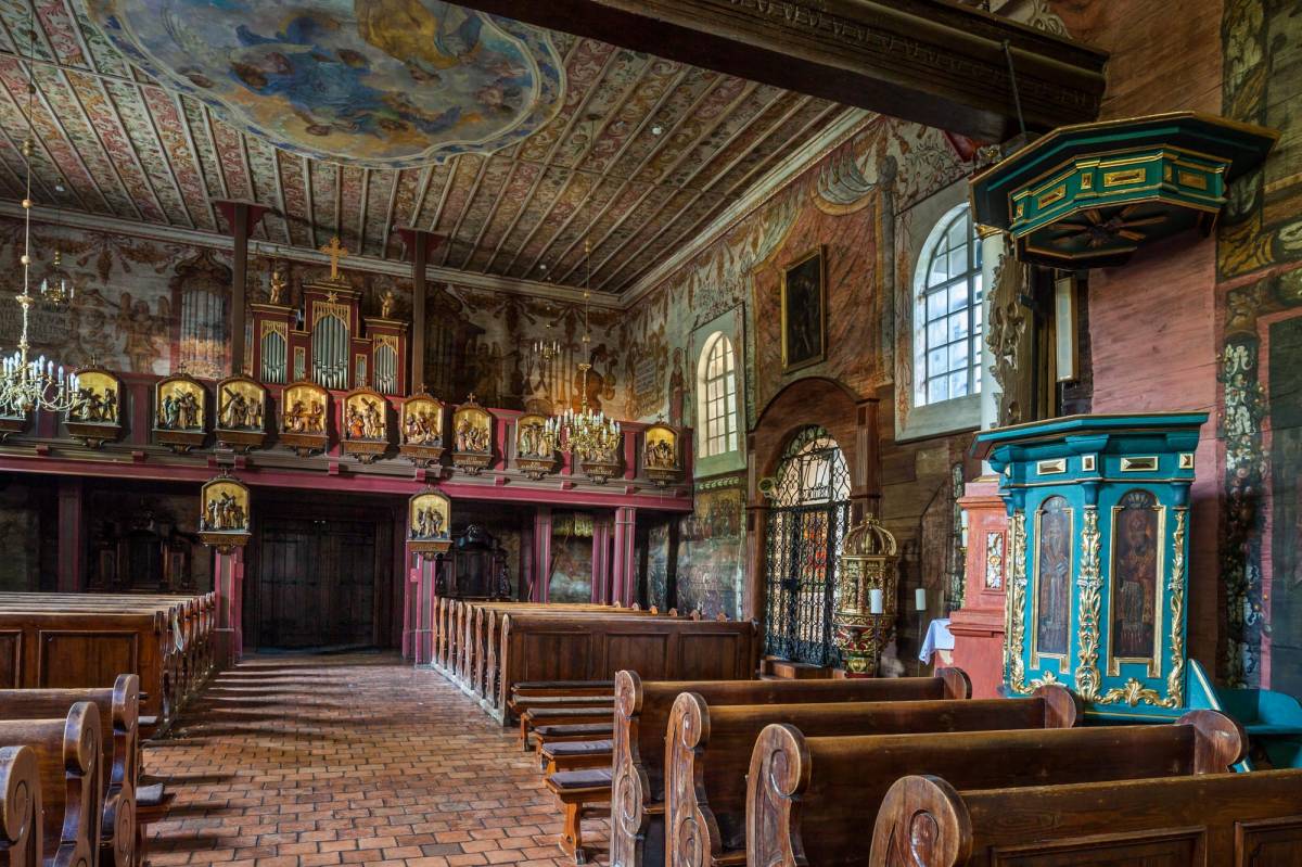 Kościół pw. św. Mikołaja przyciąga koneserów sztuki sakralnej. Wzniesiony w XVII w. przez kanoników regularnych z Trzemeszna do dziś zachwyca pięknem wystroju. W latach 1705-1706 jego wnętrze ozdobiono urokliwą barokową dekoracją malarską. Upływający czas i koleje losu odcisnęły jednak swoje piętno. Podczas prac remontowych malowidła ścienne przykryte zostały trzciną i grubą warstwą tynku. I w taki oto sposób zniknęły z gąsawskiej świątyni na 150 lat. Odkryto je na nowo podczas renowacji prowadzonej w latach 1998-1999. Po skuciu ścian ukazał się wówczas wyjątkowy widok, który po wielu latach prac konserwatorskich zachwyca każdego, kto przekroczy próg niewielkiej, drewnianej świątyni. To wysokiej klasy malarstwo iluzjonistyczne, wielowarstwowe, przedstawiające sceny z Ewangelii, postacie świętych, girlandy z kwiatów i owoców, a także florystyczne kartusze z inskrypcjami. Wnętrze kościoła to przekrój stylów – od późnego gotyku, przez barok, manieryzm, klasycyzm do współczesności.