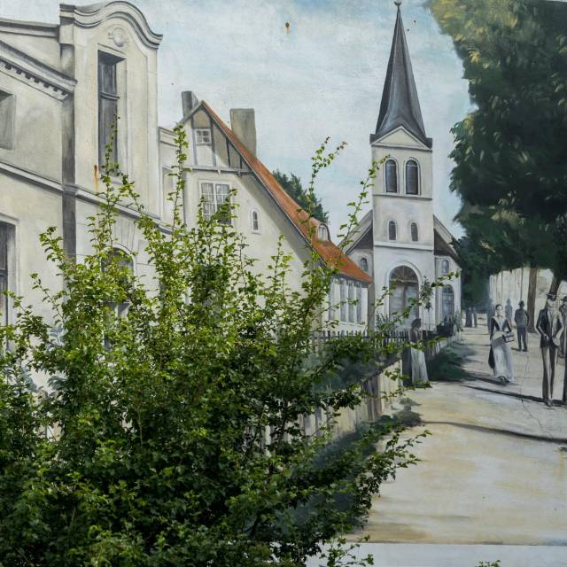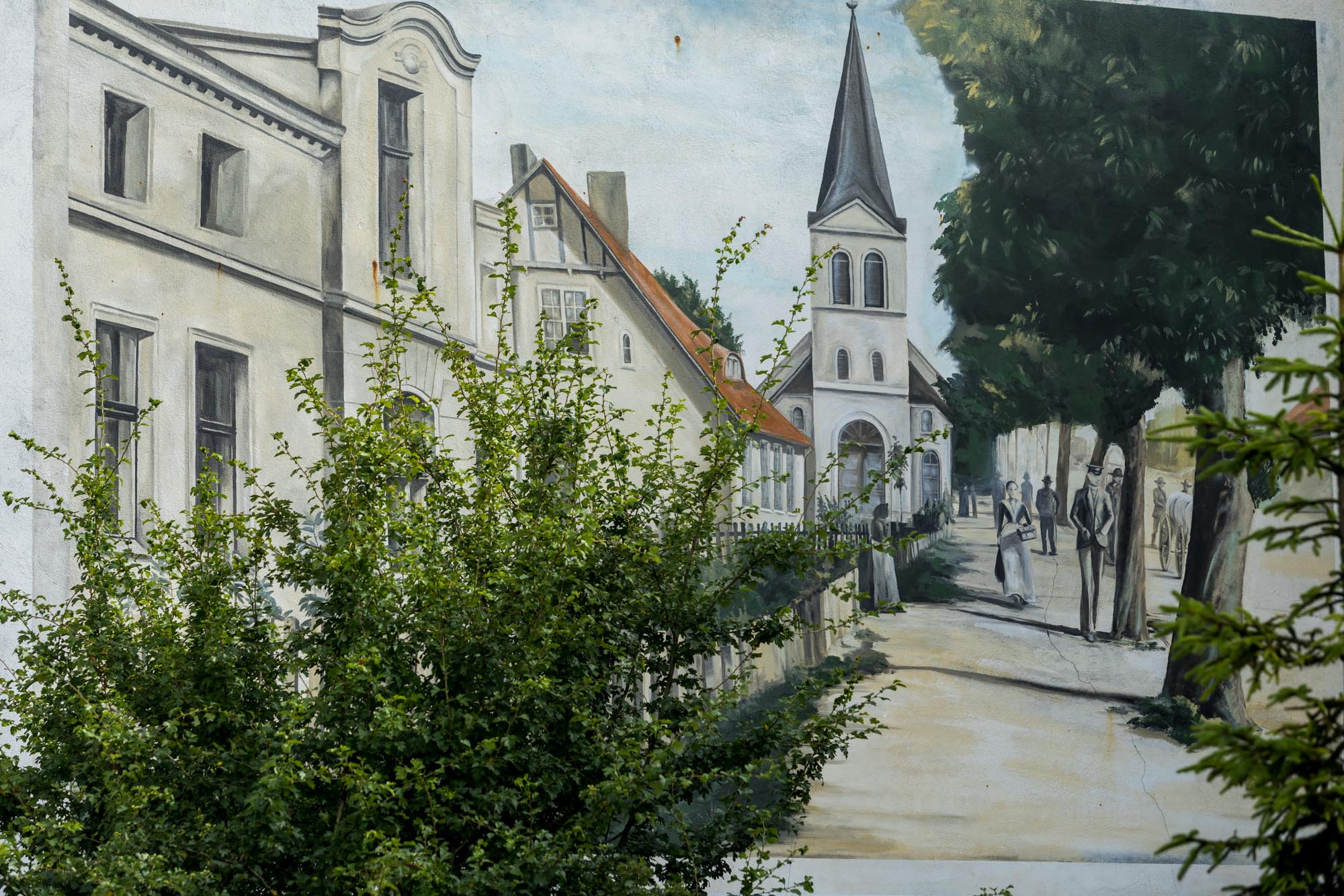 Odwiedzając Barcin, możesz się przenieść w czasie i poczuć jak mieszkaniec tego miejsca z początku XX wieku. A to wszystko za sprawą muralu, który na ścianie przy ul. św. Wojciecha o powierzchni 18 m2 przedstawia historyczną pocztówkę z nieistniejącym już kościołem ewangelickim. Inspiracją do jego powstania była widokówka opublikowana w książce „Barcin i okolica na starej widokówce” Zbigniewa Zwierzykowskiego. Kościół ewangelicki pw. Św. Marcina został postawiony na miejscu wcześniejszego budynku tymczasowego a jego budowa została ukończona w 1898 roku. Do 1945 pełnił swoją funkcję, a po II wojnie światowej został przekształcony w magazyn zbożowy a następnie w latach 60-tych zburzony. Obecnie na jego miejscu znajduje się niewielki park.