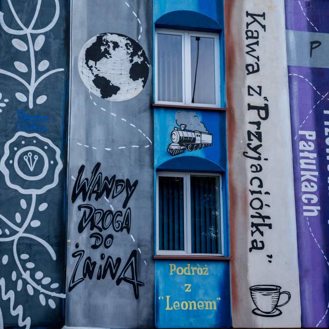 Mural odsłonięty w 2020 roku z okazji 75-lecia instytucji nawiązuje on do życia i działalności ludzi Pałuk, do współtworzących dzieje tego regionu. Mowa tu m.in. o Wandzie Dobaczewskiej, Annie i Alfredzie Krzyckich, Leonie Lichocińskim oraz Mirosławie Binkowskim. Łączy tradycję z nowoczesnością, a więc przeszłość z teraźniejszością i przyszłością. Jednocześnie ma on zaciekawiać i zachęcać odbiorcę do odwiedzenia książnicy, stąd też celowo niektóre książki na muralu mają tytuły zbliżone (nawiązujące do pierwowzorów książek, które w książnicy można wypożyczyć lub takich, których jeszcze nie wydano, ale nawiązują do tradycji regionu). Nieopisane tytułami słowniki zaś tylko kolorem nawiązują do książek na Pałukach wydanych bądź też w książnicy się znajdujących. To odbiorca ma sobie dopowiedzieć o jakie słowniki chodzi.