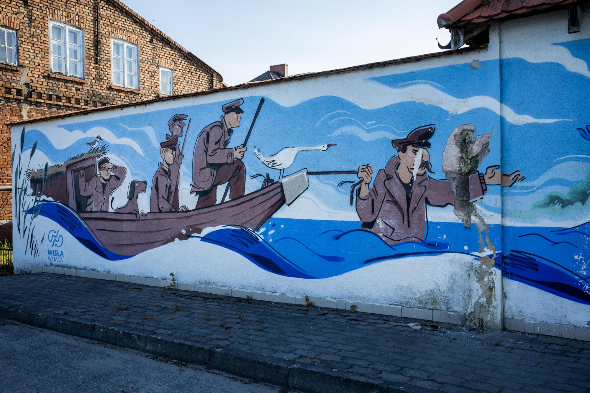 Wisła nie tylko dla mieszkańców Nieszawy ale większości miejscowości położonych nad jej brzegiem była motorem do rozwoju, była szlakiem handlowym, żywiła i dawała zarobek. Potrafiła też narobić wiele szkód i stanowić niebezpieczeństwo dla mieszkańców jak i tych, którzy byli na wodzie. Stąd pomysł, aby właśnie Wisła nazwana Boginią Wisłą stałą się bohaterką pierwszego muralu w Nieszawie autorstwa artysty Andrzeja Poprostu.