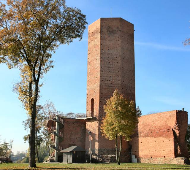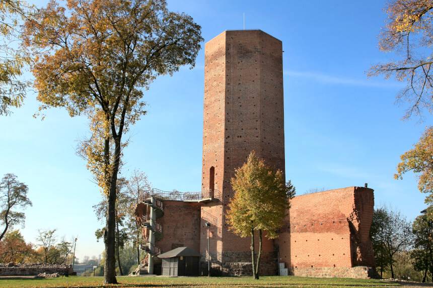 Mysia wieża to gotycka wieża ośmioboczna z XIV wieku, wzniesiona przez króla Kazimierza Wielkiego około 1350 roku. Stanowi jedyną zachowaną część zamku obronnego, który pełnił funkcję strategiczną na pograniczu polsko-krzyżackim. W 1657 roku zamek został zniszczony przez Szwedów, a wieża przetrwała jako symbol miasta. Obecnie ma 32 metry wysokości i jest udostępniona do zwiedzania, oferując panoramę jeziora Gopło i okolic. Z wieżą związana jest legenda o królu Popielu, który został zjedzony przez myszy na zamkowej wieży.