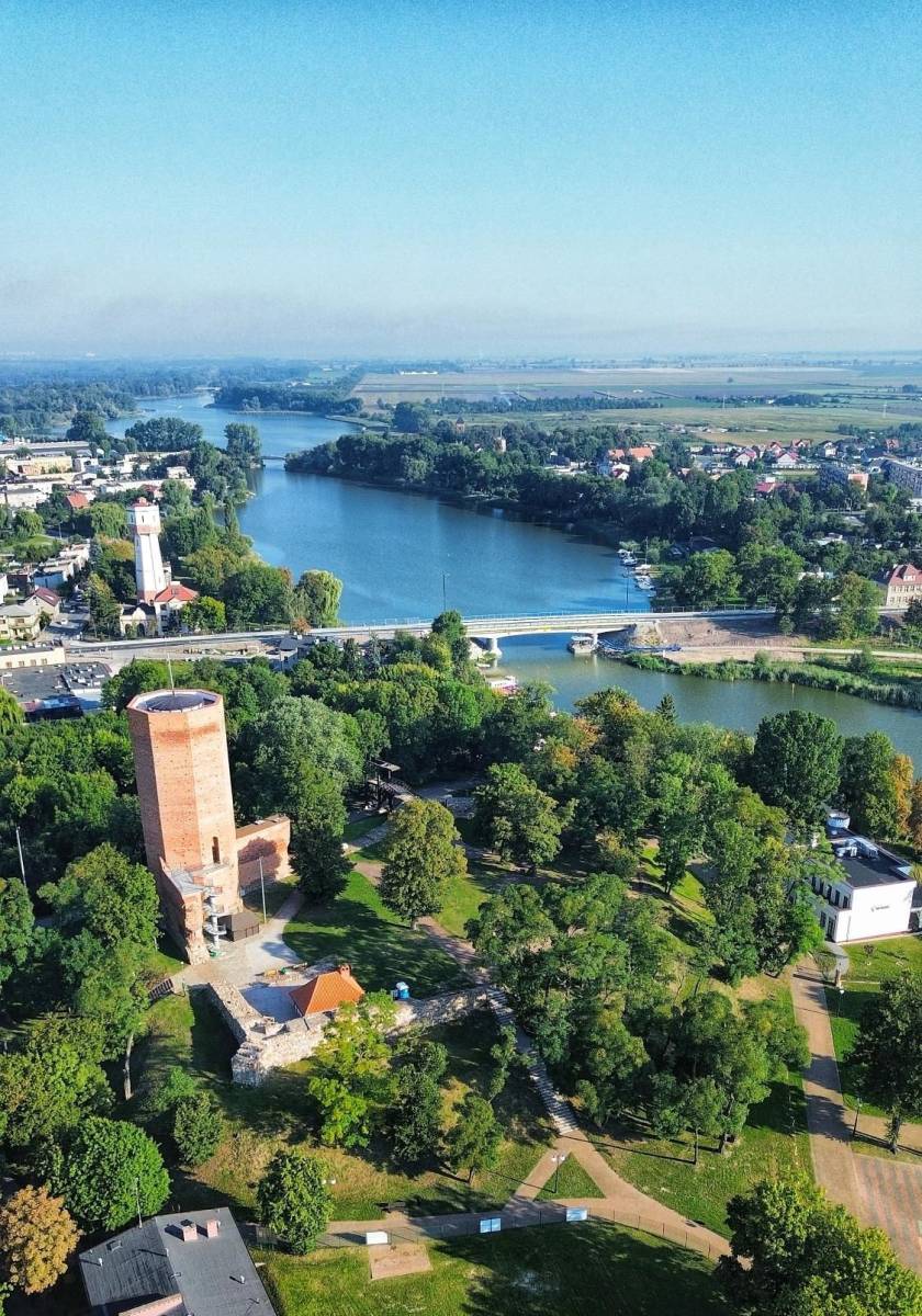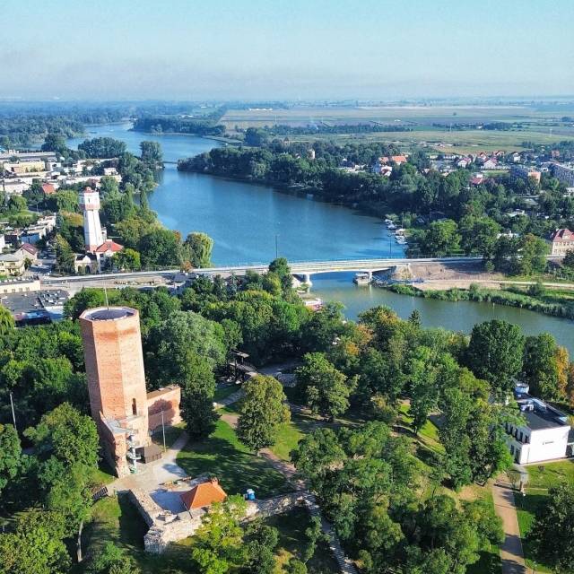 Przygodę rozpoczynamy w miejscowości Kruszwica, słynącej z legendy o Mysiej Wieży, gdzie – według podań myszy zjadły księcia Popiela. Już od samych początkowych kilometrów trasa dostarcza wyjątkowego historycznego klimatu. Jedziemy asfaltową drogą wzdłuż jeziora Gopło (zwanego kiedyś jako „Mare Polonorum” – Morzem Polaków). Wkrótce oddalamy się od brzegu i wjeżdżamy w jedyny leśny odcinek trasy – krótki, ale w okresie letnim dający przyjemny cień. Reszta trasy wiedzie głównie w otoczeniu pól uprawnych, gdyż Kujawy charakteryzują się żyznymi glebami. Po drodze nie zabraknie ciekawych krajobrazów oraz historycznych parków dworskich. Pierwszy z nich spotykamy w miejscowości Gocanowo. Trasa prowadzi dalej głównie asfaltami o niskim natężeniu ruchu. Kolejne parki dworskie miniemy w Janocinie oraz Ostrowie – każdy z nich ma swój niepowtarzalny klimat. W okolicach Goplanki ponownie zbliżamy się do jeziora. W miejscowości Powidz przejeżdżamy na jego drugi brzeg. W Łuczewie mijamy plażę – dobre miejsce na krótki odpoczynek lub kąpiel w sezonie letnim. Jeśli dysponujemy większą ilością czasu, warto wydłużyć trasę dojeżdżając do rezerwatu przyrody „Nadgoplański Park Tysiąclecia”. Nasza trasa prowadzi przez spokojne, asfaltowe drogi aż do miejscowości Lachmirowice, gdzie znajduje się kolejny park dworski – choć przeważnie omijany, często można go zwiedzić dzięki uprzejmości właścicieli – warto, bo wiedzie przez urokliwą alejkę obsadzoną okazałymi drzewami. Następnie czekają nas krótkie, szutrowe odcinki, po których wjeżdżamy na ciche, poboczne drogi asfaltowe. Finał trasy to wjazd na ścieżkę rowerową, która prowadzi do Kruszwicy, oferującą na zakończenie malowniczy widok na Mysią Wieżę, z której możemy podziwiać panoramę okolicy.