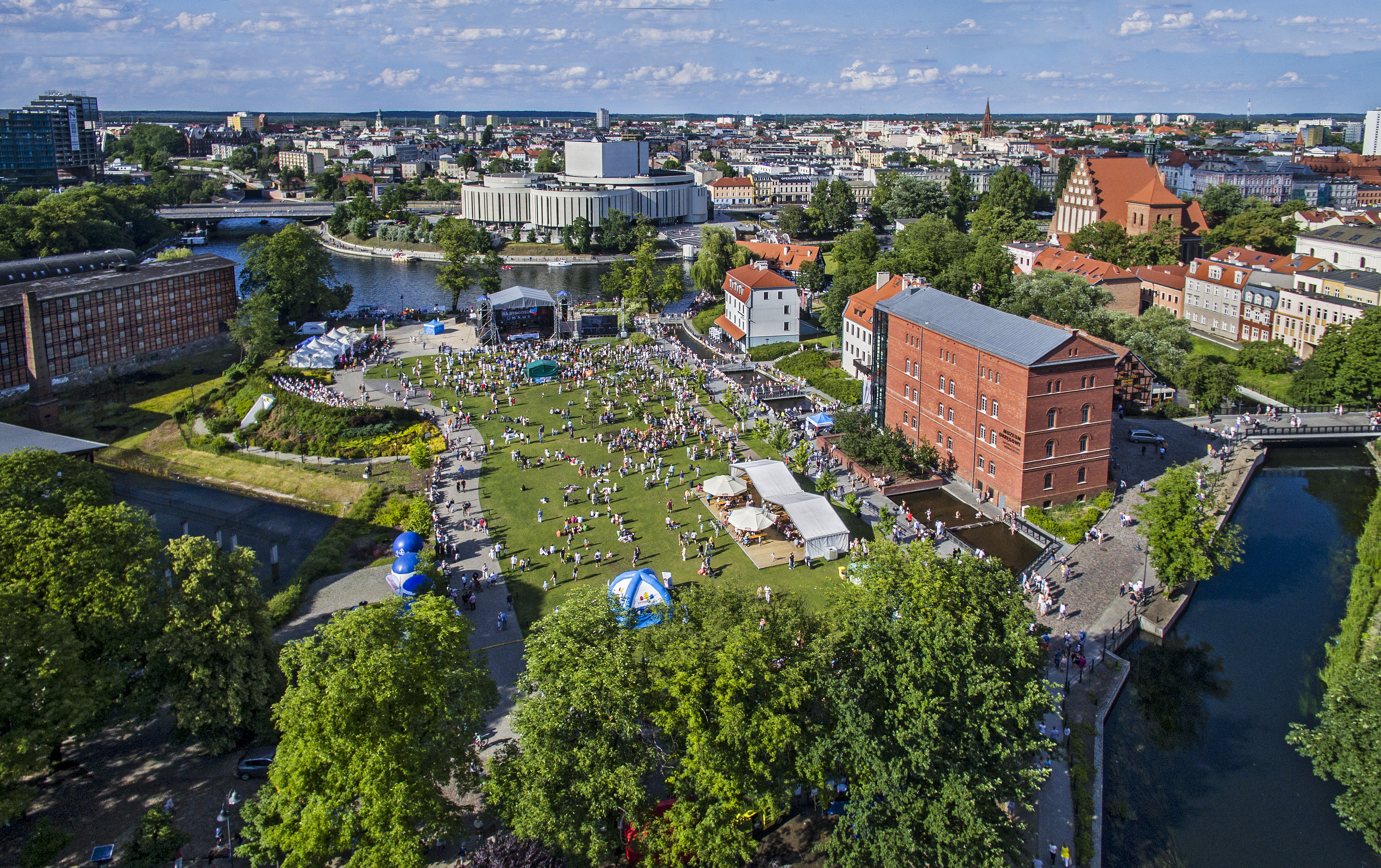 Wiele polskich miast eksponuje silny związek z rzeką, ale niewiele potrafi wykorzystać swój wodny potencjał tak, jak Bydgoszcz. Dziś miasto z dumą odsłania to, co w nim niezwykłe i pełne naturalnego uroku. Wyspa Młyńska to ulubione miejsce spotkań, spacerów i rozrywki. Przypomina młyńskie tradycje i dawną historię Mennicy Królewskiej. Znad wartko płynącej Młynówki, otaczającej wstęgą Wyspę, wyrastają XIX-wieczne zabudowania, zwane Wenecją Bydgoską. W wodach Brdy z kolei dumnie przeglądają się gmachy opery i bydgoskiej katedry. To enklawa zieleni w samym centrum miasta i niewątpliwie jedno z najbardziej urzekających miejsc.